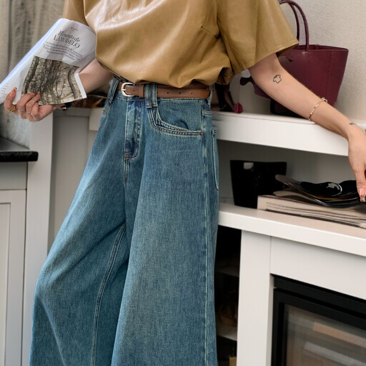 여성 와이드 데님 일자 팬츠 배라인 몸매 가림 하이웨스트 와이드 팬츠 처짐 작은 키 빈티지 팬츠
