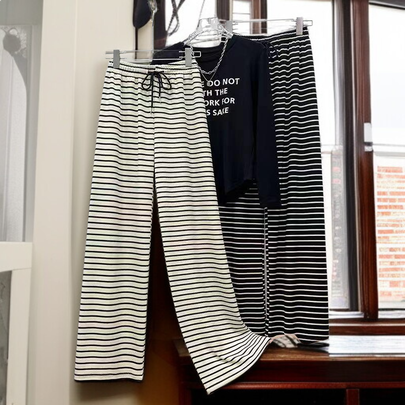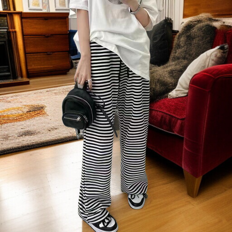 와이드 하이웨스트 슬랙스 와이드 팬츠 여 캐주얼 팬츠 봄 블랙 화이트 스트라이프 와이드 팬츠